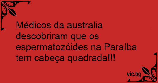 Médicos da australia descobriram que os espermatozóides na Paraíba tem cabeça quadrada!!! 0 0 0 piadas