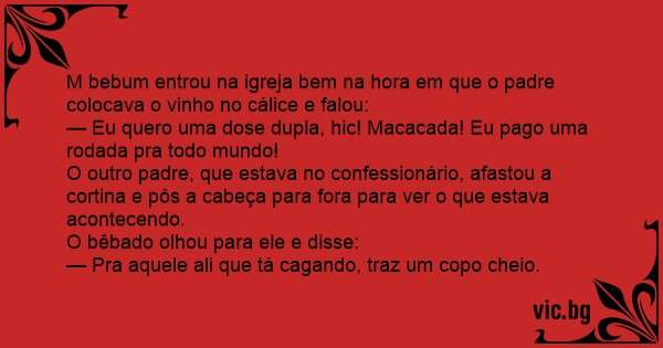 M bebum entrou na igreja bem na hоrа em que o padre colocava o vinho no cálice e falou: