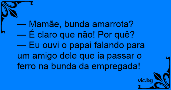 — Mamãe, bunda amarrota? —...