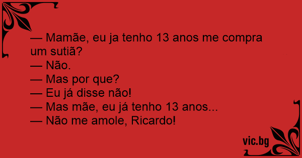 — Mamãe, eu ja tenho 13 anos me compra um sutiã?