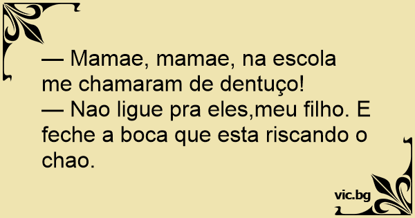 — Mamae, mamae, na escola me chamaram de dentuço!