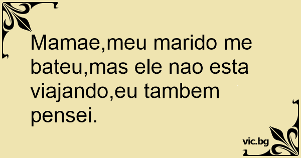 Mamae,meu marido me bateu,mas ele nao esta viajando,eu tambem pensei.