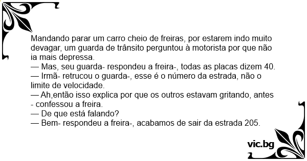 — Irmã- retrucou o guarda-, esse é o número da estrada, não o limite de velocidade.