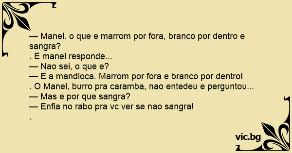 — Manel. o que e marrom por fora, branco por dentro e sangra?