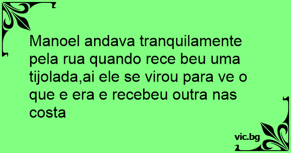 Manoel andava tranquilamente pela rua quando rece beu uma tijolada,ai ele se virou para ve o que e era e recebeu outra nas costa