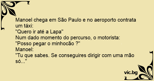 Manoel chega em São Paulo e no aeroporto contrata um táxi: