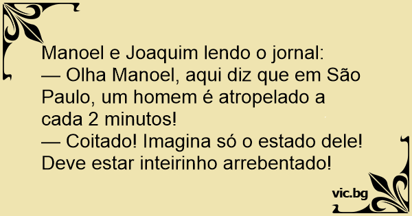 — Olha Manoel, aqui diz que em São Paulo, um homem é atropelado a cada 2 minutos!