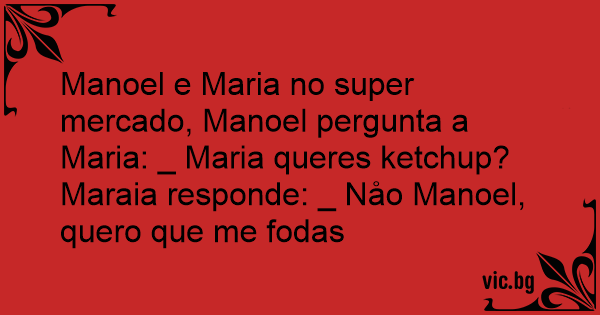 Manoel e Maria no super mercado, Manoel pergunta a Maria: _ Maria queres ketchup?