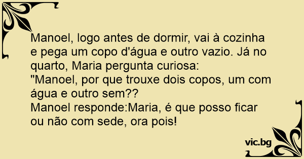 "Manoel, por que trouxe dois copos, um com água e outro sem??