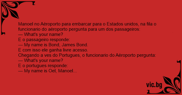 Manoel no Aéroporto para embarcar para o Estados unidos, na fila o funcionario do aéroporto pergunta para um dos passageiros: