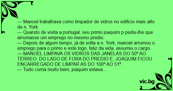 — Manoel trabalhava como limpador de vidros no edificio mais alto de n. York.