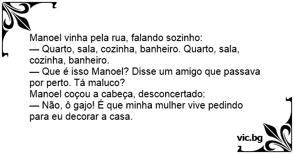 — Não, ô gajo! É que minha mulher vive pedindo para eu decorar a casa.