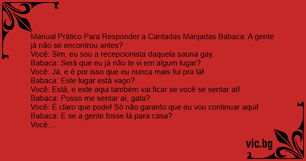 Manual Prático Para Responder a Cantadas Manjadas Ваваса: A gente já não se encontrou antes?