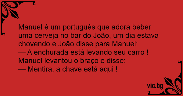 Manuel é um português que adora beber uma cerveja no bar do João, um dia estava chovendo e João disse para Manuel: