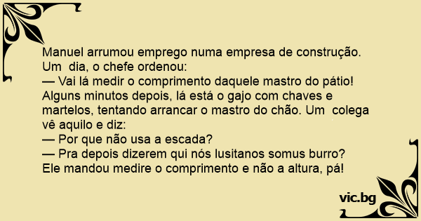 Manuel arrumou emprego numa empresa de construção. Um dia, o chefe ordenou: