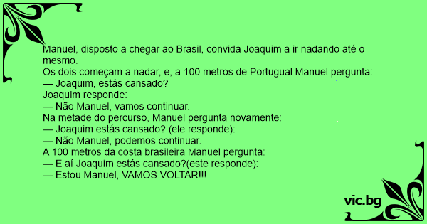 Os dois começam a nadar, e, a 100 metros de Portugual Manuel pergunta: