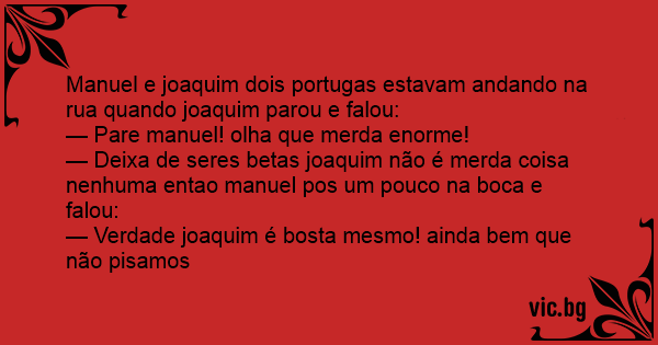 Manuel e joaquim dois portugas estavam andando na rua quando joaquim parou e falou:
