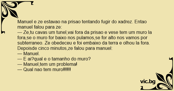 Manuel e ze estavao na prisao tentando fugir do xadrez. Entao manuel falou para ze:
