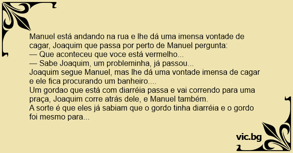 Manuel está andando na rua e lhe dá uma imensa vontade de саgаr, Joaquim que passa por perto de Manuel pergunta: