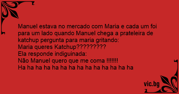 Manuel estava no mercado com Maria e cada um foi para um lado quando Manuel chega a prateleira de katchup pergunta para maria gritando: