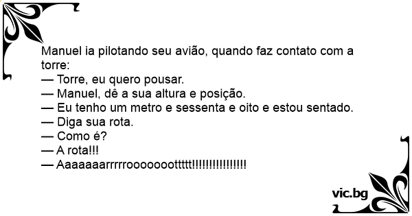 Manuel ia pilotando seu avião, quando faz contato com a torre: