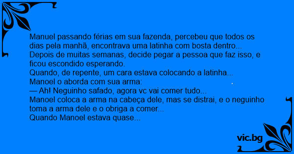 Manuel passando férias em sua fazenda, percebeu que todos os dias pela manhã, encontrava uma latinha com bosta dentro...