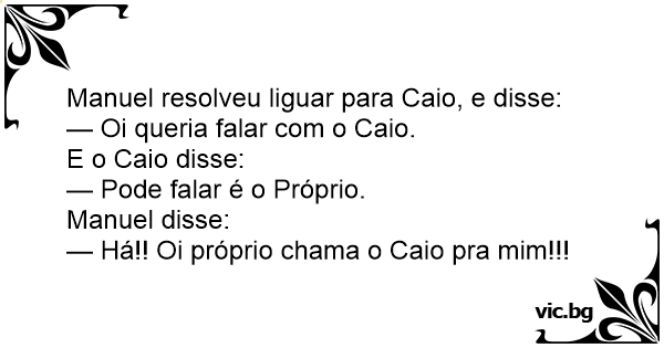 — Há!! Oi próprio chama o Caio pra mim!!!