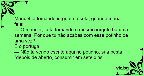 — O manuer, tu ta tomando o mesmo iorgute há uma semana. Por que tu não acabas com esse potinho de uma vez?
