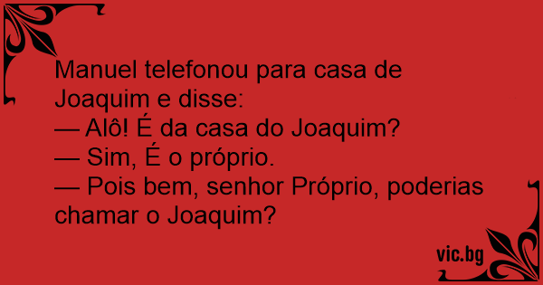 — Pois bem, senhor Próprio, poderias chamar o Joaquim?
