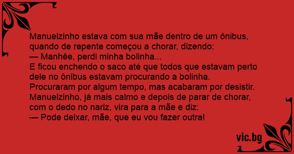Manuelzinho estava com sua mãe dentro de um ônibus, quando de repente começou a chorar, dizendo: