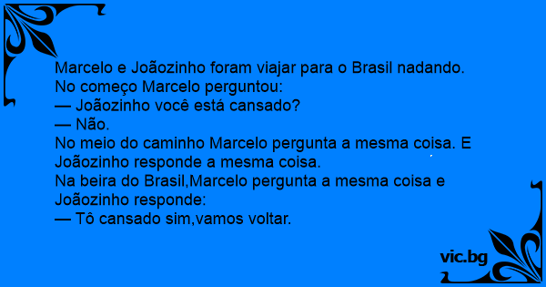 Marcelo e Joãozinho foram viajar para o Brasil nadando.