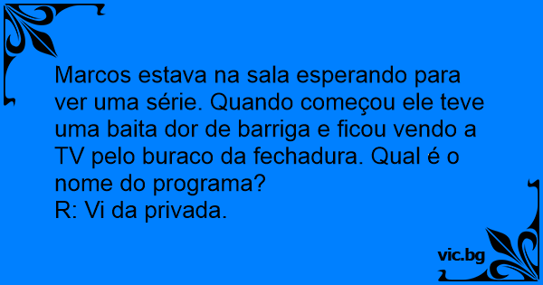 Marcos estava na sala esperando para ver uma série. Quando começou ele teve uma baita dor de barriga e ficou vendo a TV pelo buraco da fechadura. Qual é o nome do programa?