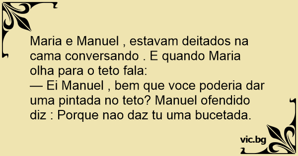 Maria e Manuel , estavam deitados na cama conversando . E quando Maria olha para o teto fala: