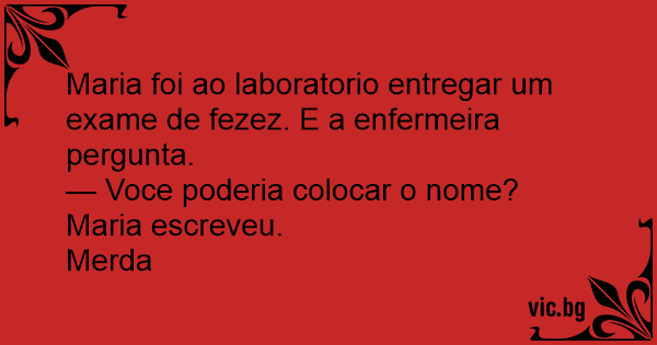 Maria foi ao laboratorio entregar um exame de fezez. E a enfermeira pergunta.