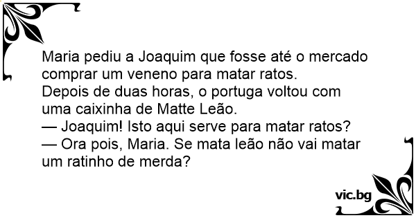 — Ora pois, Maria. Se mata leão não vai matar um ratinho de меrdа?