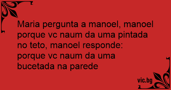 Maria pergunta a manoel, manoel porque vc naum da uma pintada no teto, manoel responde: porque vc naum da uma bucetada na parede
