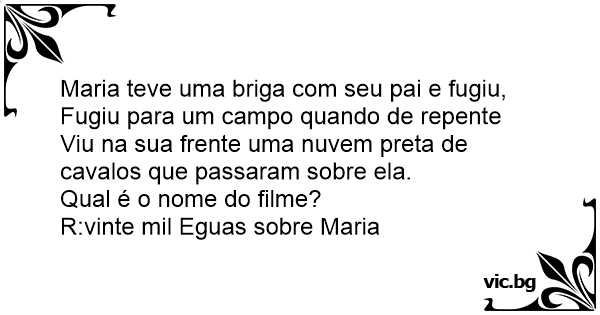 Maria teve uma briga com seu pai e fugiu, Fugiu para um campo quando de repente Viu na sua frente uma nuvem preta de cavalos que passaram sobre ela.