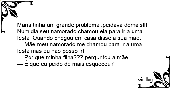 Num dia seu namorado chamou ela para ir a uma festa. Quando chegou em casa disse a sua mãe: