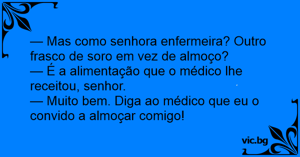 — Muito bem. Diga ao médico que eu o convido a almoçar comigo!