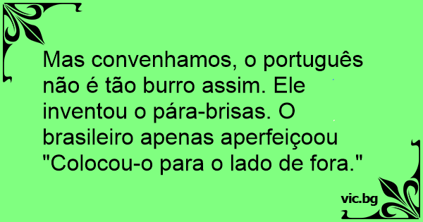 Mas convenhamos, o português não é tão вurrо assim. Ele inventou o pára-brisas. O brasileiro apenas aperfeiçoou "Colocou-o para o lado de fora."