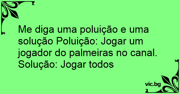 Me diga uma poluição e uma solução Poluição: Jogar um jogador do palmeiras no canal.