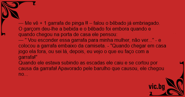 O garçom deu-lhe a bebida e o bêbado foi embora quando e quando chegou na porta de casa ele pensou: