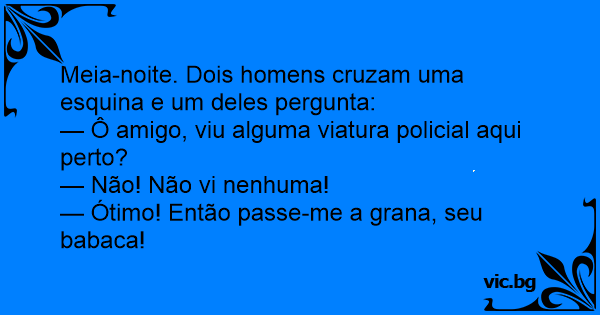 — Ô amigo, viu alguma viatura policial aqui perto?