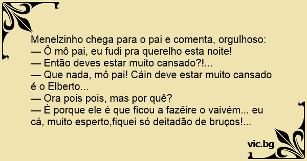 — Ô mô pai, eu fudi pra querelho esta noite!