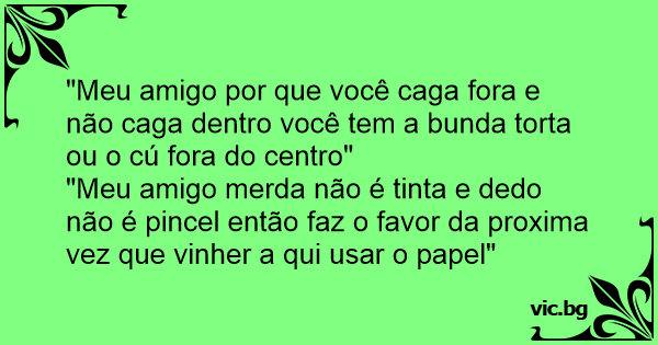"Meu amigo por que você caga fora e não caga dentro você tem a bunda torta ou o cú fora do centro"