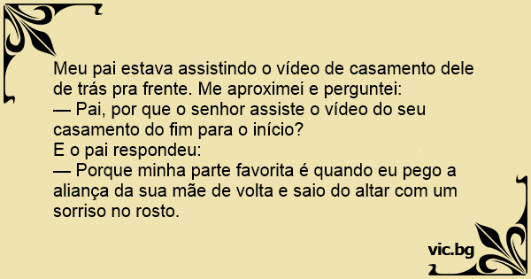 — Pai, por que o senhor assiste o vídeo do seu casamento do fim para o início?