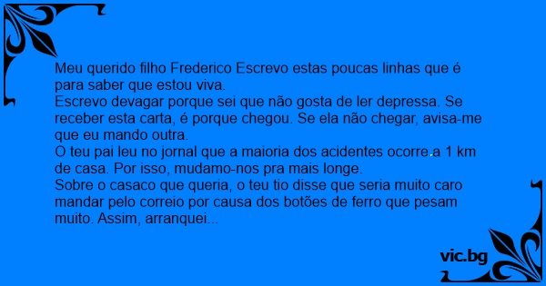 Meu querido filho Frederico Escrevo estas poucas linhas que é para saber que estou viva.