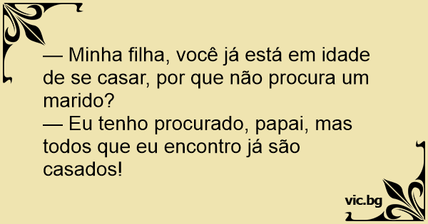 — Eu tenho procurado, papai, mas todos que eu encontro já são casados!