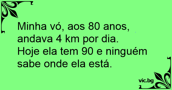 Minha vó, aos 80 anos, andava 4 km por dia.