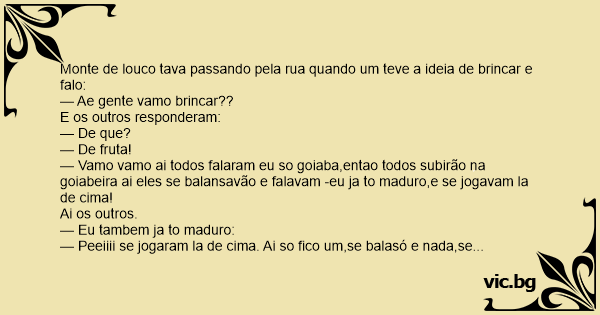 Monte de louco tava passando pela rua quando um teve a ideia de brincar e falo: